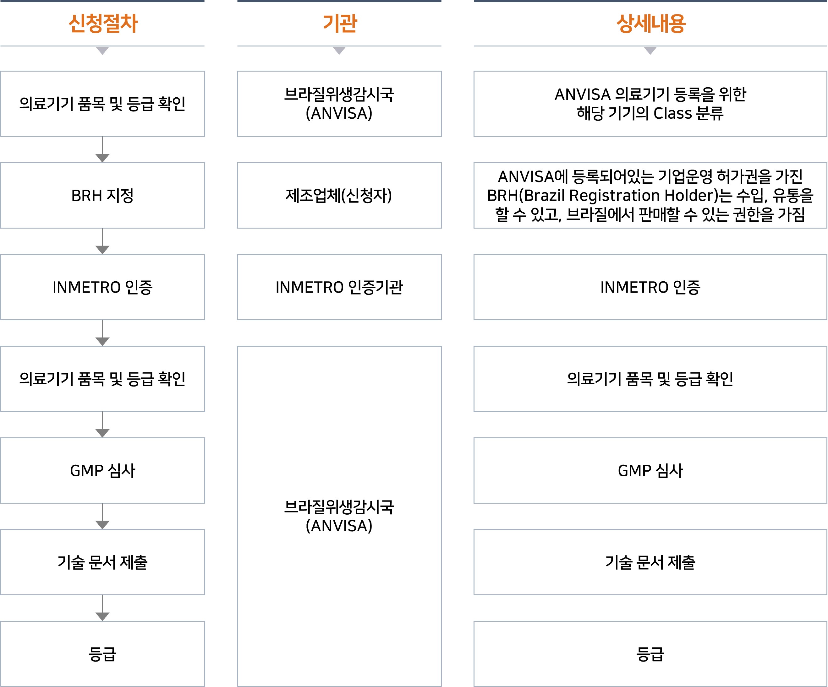 ANVISA(Agencia Nacional de Vigilancia Sanitaria)´Â ½ÄǰÀǾàǰ¾ÈÀüó¿Í À¯»çÇÑ ¾÷¹«¸¦ ÇÏ´Â ±â°üÀÎ ºê¶óÁú Ministério da saúde(º¸°Çº¹ÁöºÎ)ÀÇ »êÇÏ °ü¸®°¨µ¶ ÇàÁ¤ ±â°üÀÔ´Ï´Ù. ANVISA¿¡¼´Â ºê¶óÁú ±¹¹ÎÀÇ À§»ý ¹× °Ç°°ú °ü·ÃµÇ´Â ¸ðµç Á¦Ç° ¹× ¾÷üÀÇ ÀÎÇã°¡, °ü¸® °¨µ¶À» µ¶¸³ÀûÀ¸·Î ¿î¿µÇÕ´Ï´Ù. ÀÇ·á±â±â ÆÇ¸Å¸¦ À§ÇØ ANVISA ÀÎÁõÀ» ÃëµæÇÏ¿©¾ß Çϸç, ¿ì¸®³ª¶ó¿¡¼ ÀÎÁõ ´ë»óÀÌ ¾Æ´Ñ Á¦Ç°ÀÌ ºê¶óÁú¿¡¼´Â ÀÎÁõ ´ë»ó ǰ¸ñÀÎ °æ¿ì°¡ ÀÖÀ¸¹Ç·Î »çÀü¿¡ È®ÀÎÀÌ ÇÊ¿äÇÕ´Ï´Ù. |