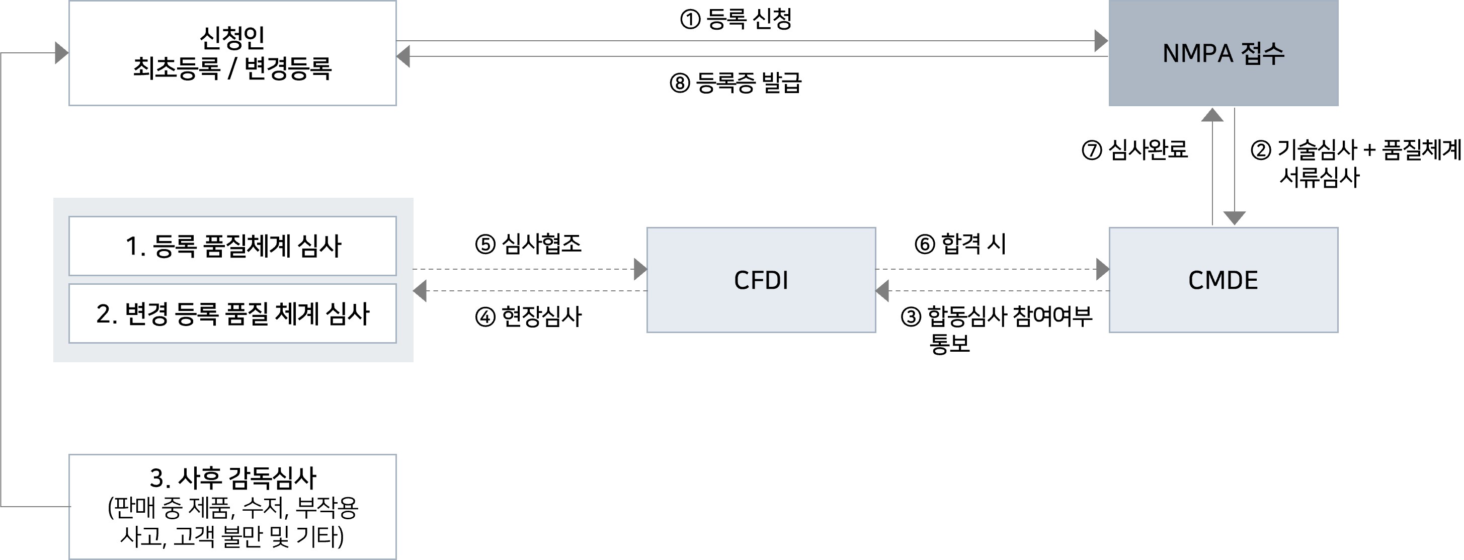 NMPA(National Medical Products Administration)´Â Áß±¹ ±¹¹«¿ø »êÇÏ ±¹°¡¾àǰ°¨µ¶°ü¸®±¹À¸·Î Áß±¹ ³» ÀÇ·á±â±â¿¡ ´ëÇÑ °ü¸® ¹× °¨µ¶ ¹× ÀÇ·á±â±â »ê¾÷ Á¤Ã¥¿¡ ´ëÇÑ °æÁ¦Àû ¿î¿µÀÇ Ã¥ÀÓÀ» Áö°í ÀÖ½À´Ï´Ù. ÀÇ·á±â±â Á¦Ç°ÀÌ Áß±¹¿¡¼ ÆÇ¸ÅµÇ±â À§Çؼ´Â »çÀü¿¡ NMPAÀÇ ½ÂÀÎÀ» ¹Þ¾Æ¾ß ÇÕ´Ï´Ù. NMPA´Â ÀÇ·á±â±â¿¡ ´ëÇÑ Áö¼ÓÀûÀÎ »çÈÄ °¨µ¶À» ÅëÇØ ¼ÒºñÀÚµéÀÇ ÀÇ·á±â±â »ç¿ëÀÇ ¾ÈÁ¤¼º°ú À¯È¿¼ºÀ» º¸ÀåÇϰí ÀÖ½À´Ï´Ù. |